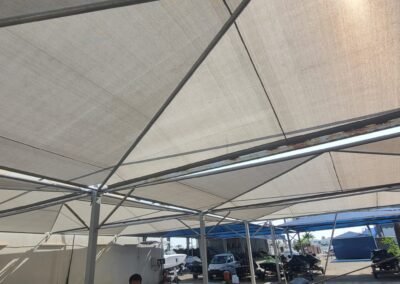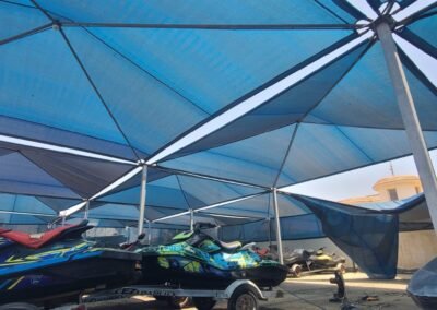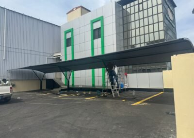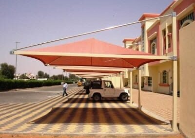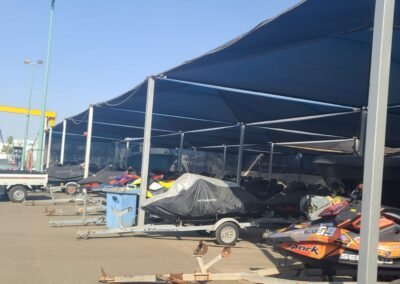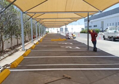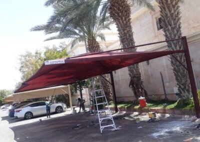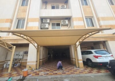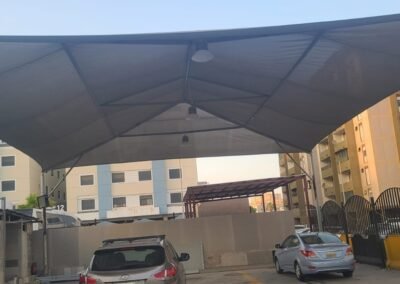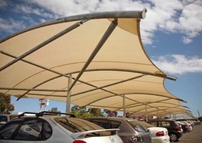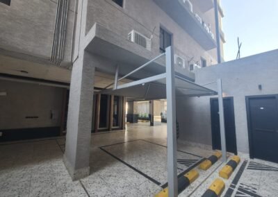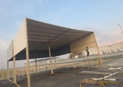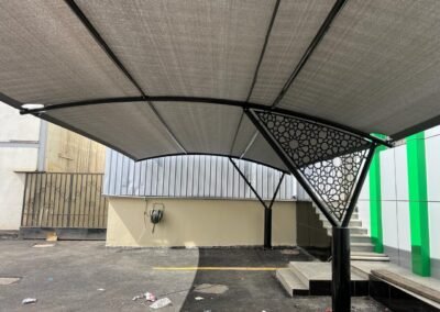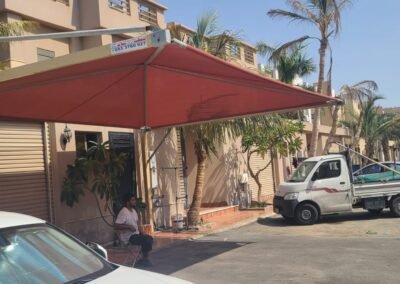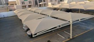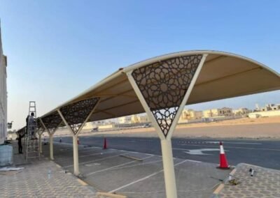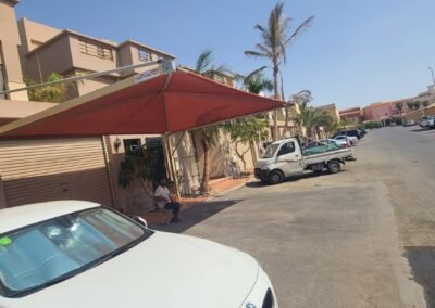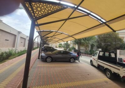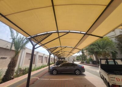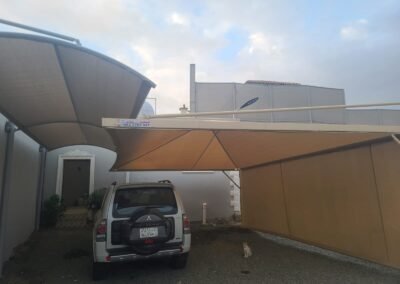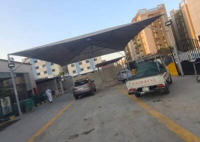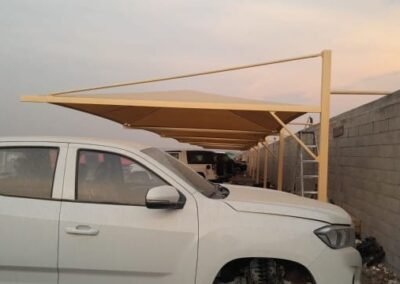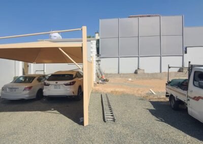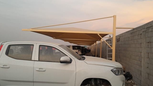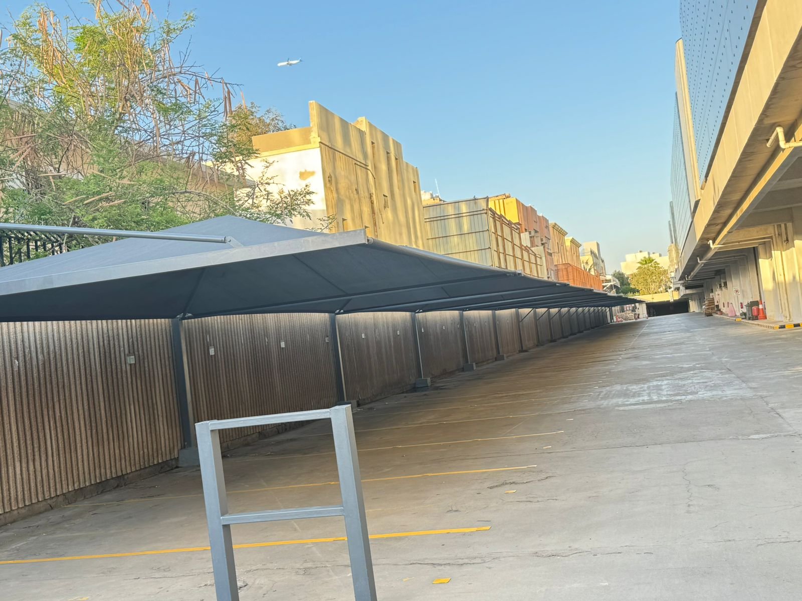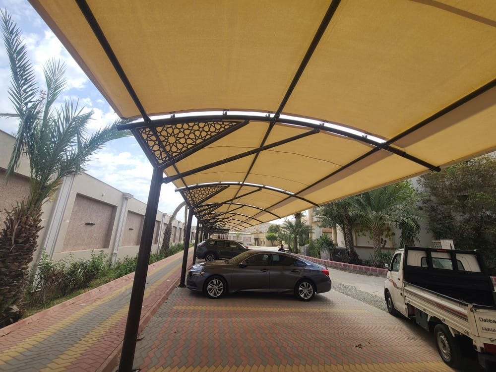 نحن نعلم قيمة سيارتك، ولهذا نصمم في ابراج المملكة مظلات تتجاوز وظيفة الحماية. نحن نستخدم هياكل فولاذية معالجة خصيصاً لمقاومة رطوبة جدة، ونغطيها بأجود أنواع الـ PVC العازل للحرارة. النتيجة هي حماية فائقة ومظهر أنيق ومتكامل يرفع من قيمة الممتلكات بأكملها.