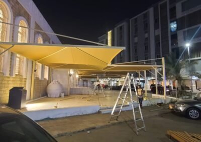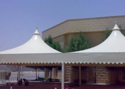 نحن في ابراج المملكة ندرك أن الجمال يكمن في البساطة المتقنة. لهذا، نولي المظلات الهرمية عناية خاصة في التنفيذ، حيث نضمن أن كل زاوية متوازنة وكل تفصيل يعكس حرفيتنا. إنها ليست مجرد مظلة عملية، بل هي لمسة من الأناقة الخالدة التي نضيفها بمهارة لمداخل المنازل والمساحات الخاصة.