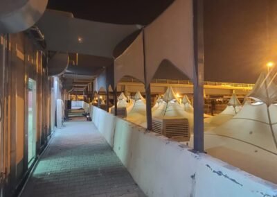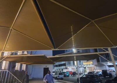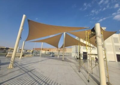 في ابراج المملكة، نتعامل مع مظلات الشد الإنشائي كأعمال فنية معمارية قبل أن تكون مجرد أغطية. نحن نصممها بدقة هندسية لتحول المساحات الشاسعة الفارغة إلى معالم بصرية ملهمة، مستخدمين أجود الأقمشة المقاومة التي تضمن جمالاً انسيابياً ومتانة تتحدى الزمن، لتكون بصمتنا المميزة في مشروعك.