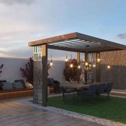 البرجولة المثالية، كما نراها في ابراج المملكة، هي قلب الحديقة النابض بالحياة. لهذا، نحن نصممها لتكون أكثر من مجرد هيكل، بل هي مساحة مصممة خصيصاً لتجمع العائلة والأصدقاء. نستخدم أجود أنواع الحديد والأخشاب لنخلق لك جلسة أحلامك التي تصبح مسرحاً لأجمل ذكرياتك.