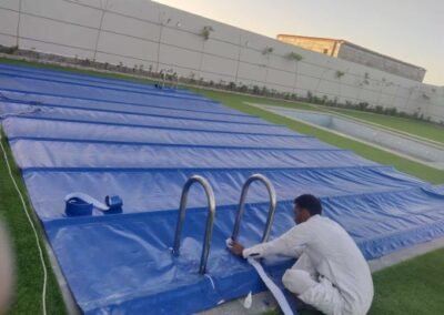 في ابراج المملكة، نحول مسبحك من مجرد مساحة للسباحة إلى منتجع خاص وآمن. نحن نبتكر تغطيات فريدة من مادة اللكسان الشفافة والملونة، لا لحجب أشعة الشمس الضارة فحسب، بل لخلق أجواء من الخصوصية والجمال. مهمتنا هي أن نمنحك القدرة على الاستمتاع بمسبحك في كل لحظة بثقة وراحة بال.