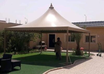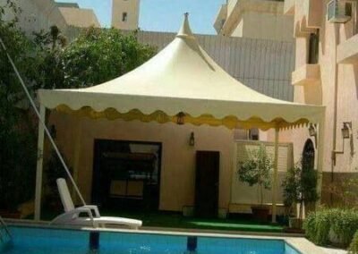 تعد المظلات الهرمية من أكثر أنواع المظلات شيوعاً لجمال تصميمها وقوتها. مثالية لتغطية مداخل الفلل، الخزانات، ومساحات الجلوس الصغيرة. يوفر شكلها الهرمي حماية ممتازة من الشمس والأمطار، مع لمسة معمارية أنيقة. نقدمها في “ابراج المملكه” بألوان وأحجام متعددة.